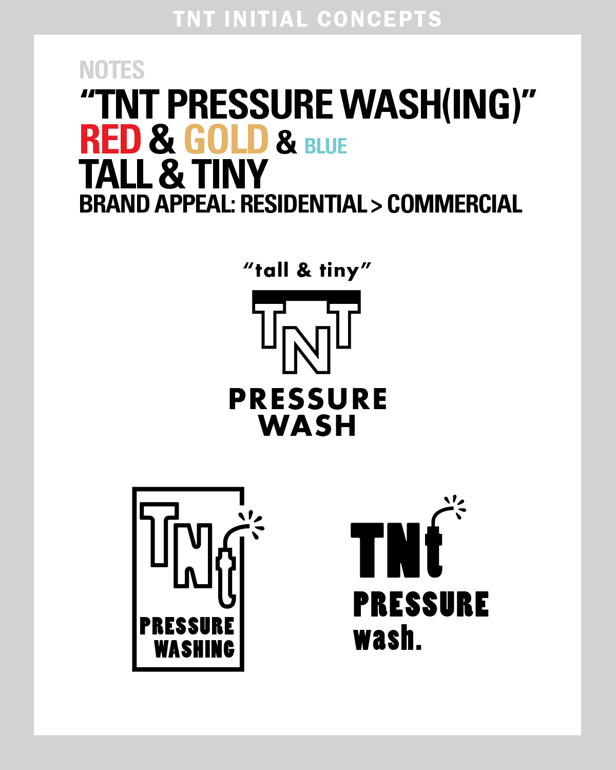 Whether for a branding project with a vast, multifaceted set of deliverables or for a quickie like this one, my goal is to set a client up for success by coupling strategy with great design. Here, the question was whether the amazing stewards of TNT were going to appeal to residential customers or to commercial. It was an essential question to answer—their tone of voice and character should be made to delight and appeal to their target base.
